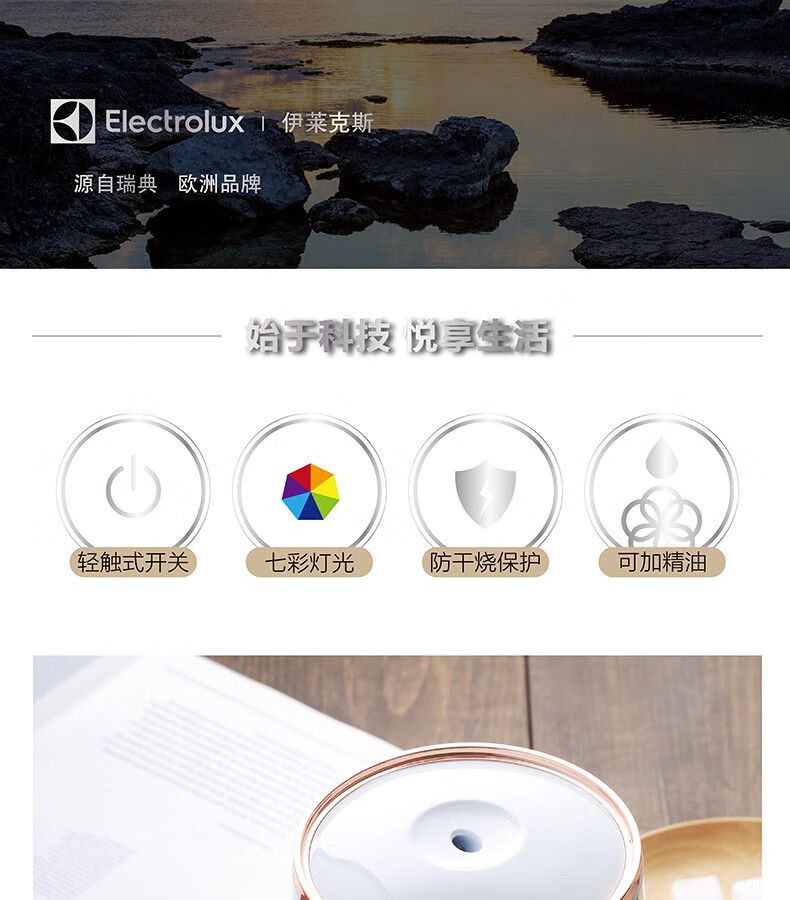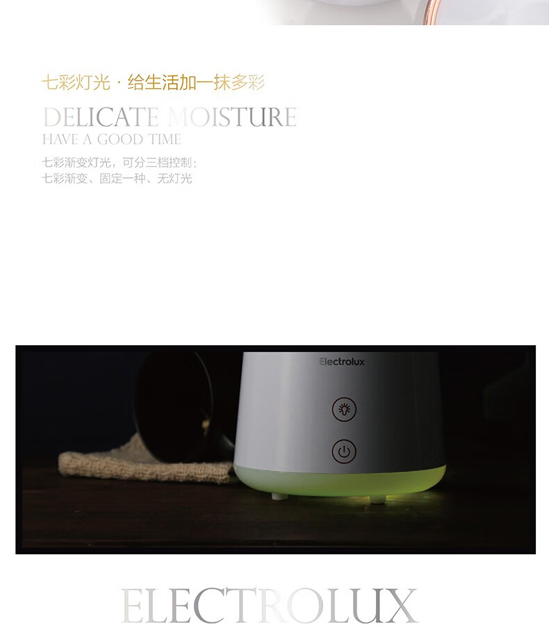 特别卖点: 轻触式开关,自动断电,干烧保护,七彩渐变灯光,可分三档控制